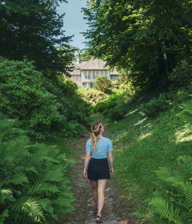 Efter rundvisningen indenfor gik vi en tur gennem parken i baghaven, hvor man frit kan gå en tur og nyde de skulpturer, som står spredt rundt omkring. Alle udearealer er desuden åbne 24/7 og er ganske gratis. Et godt tip fra Kristine er at medbringe et håndklæde, så man kan tage en dukkert i havet. Parken ligger nemlig lige ned til stranden. Vi nød udsigten over vandet fra den flotte pileflet-hule, som står bagerst i haven – det er bestemt et besøg værd!
