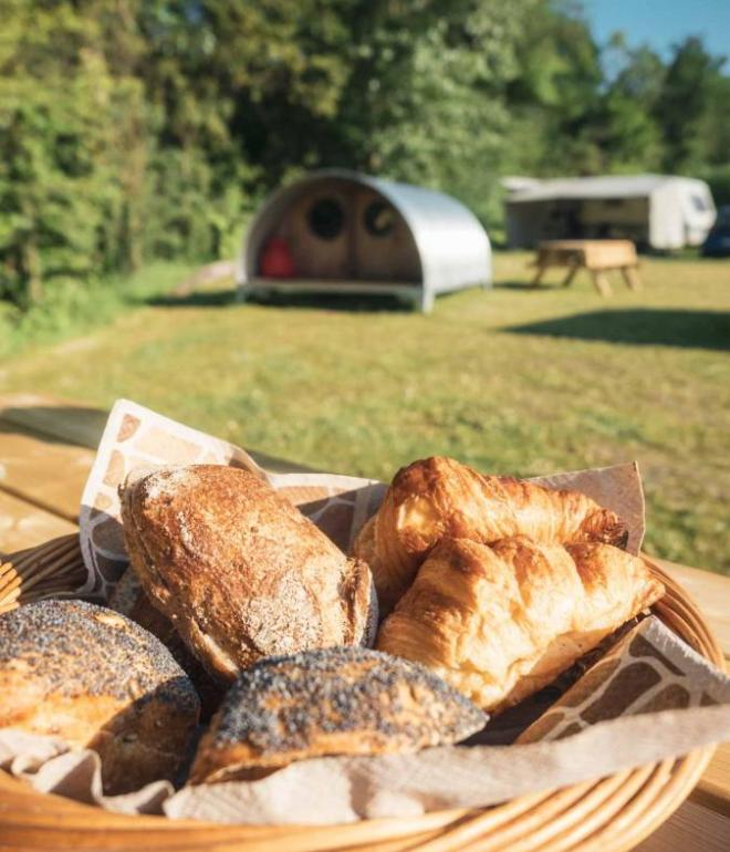 Næste morgen kom Eva forbi igen – denne gang med friskbrygget kaffe og en lækker morgenmadskurv, som vi nød på udendørsterrassen i morgensolen – en perfekt start på den aktive og oplevelsesrige dag, som vi havde i vente.